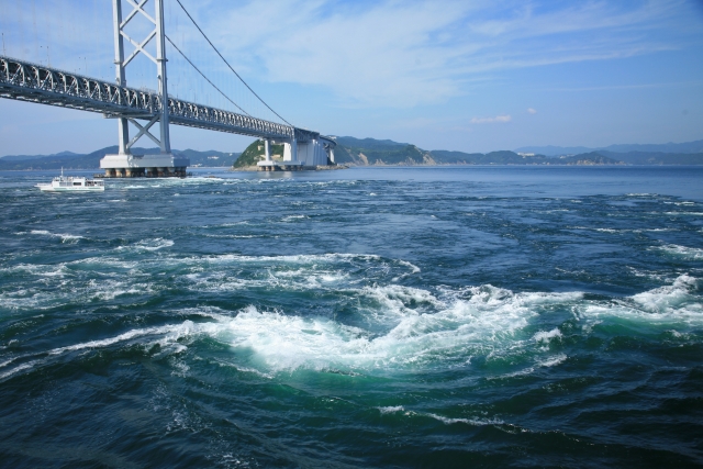 鳴門の渦潮が発生する鳴門海峡は世界三大潮流のひとつにもなっており、世界最大級の渦潮を見ることができます。