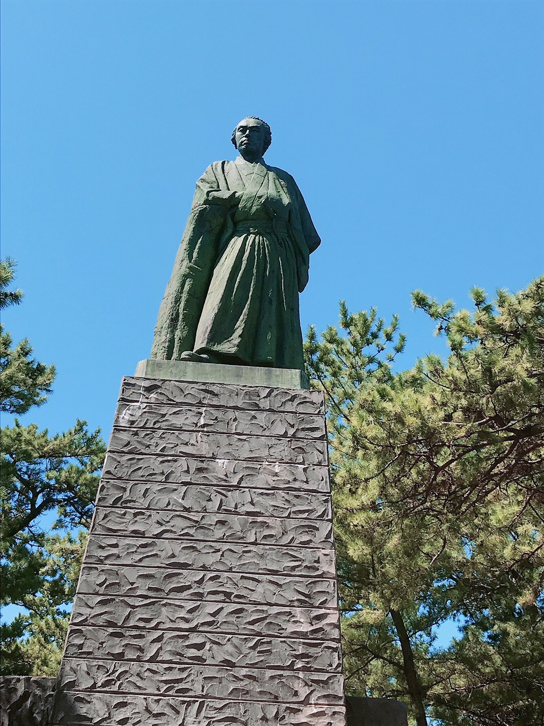 桂浜は、太平洋に臨む海岸で高さ5.3mの坂本龍馬像が有名です。